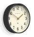 A small grey wall clock fusing mid-Century modern design with contemporary minimalist style.