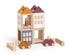 Lubu Town Autumnvale Maxi comes with a plum and a yellow ochre car, a plum and a yellow ochre driver, a plum and a ochre roof, four ladders and four stackable houses.
